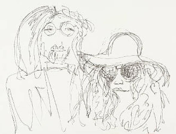 現在マーケットに出回る作品の多くは版画(シルクスクリーンやリトグラフなど)です。多くの作品はセルフポートレートをモチーフに、蛇雲玲音(ジョン・レノン)の印とオノ・ヨーコの直筆サインが記された形式となります。簡単なデッサンに見受けられますが、ジョン・レノンを連想させる丸メガネと長髪を効果的に表されています。