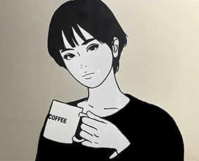 まずデッサンを行ってから、何回もコピーを繰り返し、どんどん余計な線や表現を取り除いていき、あの作品の数々が誕生します。あえて人物に感情を持たせず、どういう感情をくみ取るかは見る側に委ねているそうです。シンプルでミニマムな作風は、どこか懐かしさを感じさせながら、同時に最先端のアートシーンをも彩っています。