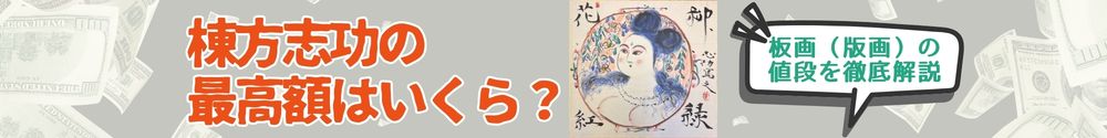 作品の種類や状態によって大きく異なります。一般的には、板画(墨一色)で数十万円〜数百万円、手彩色が施された板画や代表作系統であれば数百万円〜数千万円規模になることもあります。正確な金額は、作品ごとの確認が必要です。
