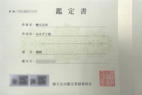 棟方志功鑑定登録委員会による鑑定書
