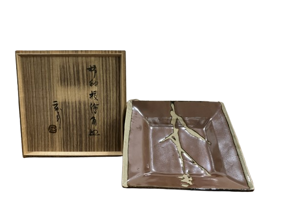 濱田庄司「柿釉抜絵角皿」をお買取りいたしました。