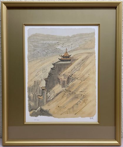 莫高窟(ばっこうくつ)とは大小492の石窟に彩色塑像と壁画が保存され、仏教美術として世界最大の規模があります。水彩画作品をもとに制作されて版画作品です。日本画をもとに制作された版画よりは落ち着いた価格帯となります。