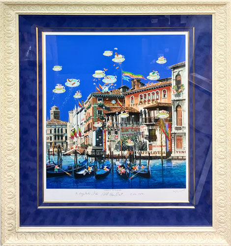 山形博導の代名詞とも言えるシルクスクリーン技法を駆使した本作品は、その明るい色彩とロマンチックな情景描写で人気を集めるモチーフです。日常の中の優雅なティータイムを切り取ったテーマ性は、近年の市場相場においても比較的評価がしやすい作品です。繊細なコンディションも考慮し評価いたしました。