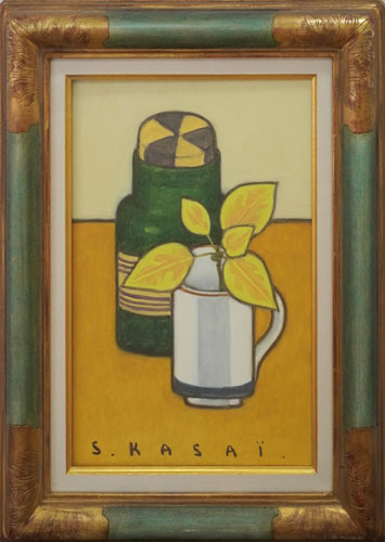 デフォルメされた大胆な構図と優しい色彩で知られる洋画家です。特に静物画は彼の代表的なモチーフであり、市場でも評価が高い作品群に位置づけられています。今回ご売却いただいた「ポインセチアン緑色のがらすびん」は、彼の特徴である日本画のような輪郭線と、静謐ながらも目を引く独自の空間表現が魅力です。直近の絵画相場を考慮して買取させていただきました。