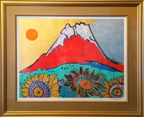 片岡球子「富士に献花(ひまわり)」をお買取りいたしました。