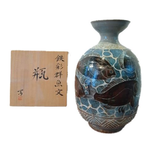 加山哲也「鉄彩群魚文瓶」をお買取りいたしました。
