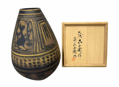 清水六兵衛「玄窯鉄絵縄文花瓶」をお買取りいたしました。