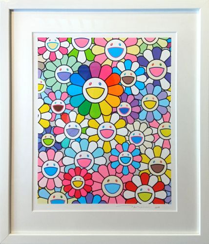 2020年に制作されたシルクスクリーン版画です。村上隆を象徴とするモチーフのひとつである花を散りばめた構図です。直近の相場をもとに買取金額を提案させていただきました。