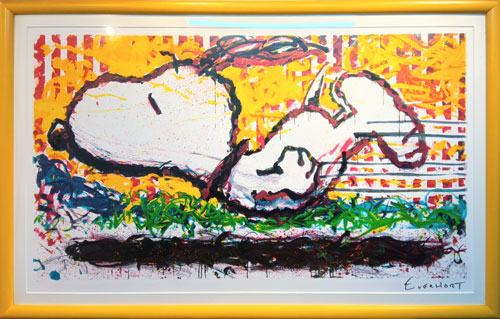 トム・エバハート氏の代表的なモチーフであるスヌーピーを描いたリトグラフ作品です。この作品は2000年に制作され、限定500部で発行された希少性があります。作品名から連想される夕焼けの情景が色彩豊かに表現されており、大判サイズで存在感があります。近年、エバハート作品の市場評価は安定しており、限定部数や良好なコンディション、流通状況を総合的に判断し、適正な評価をさせていただきました。