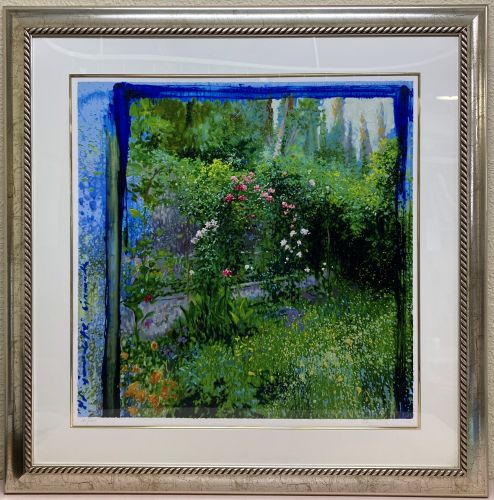色彩が豊かで大胆なリャドらしい作品です。 庭園のいきいきとした奥行きのある緑と花がとても魅力的です。シルクスクリーン特有の経年劣化によるダメージがある点、直近の相場観を踏まえて評価させていただきました。