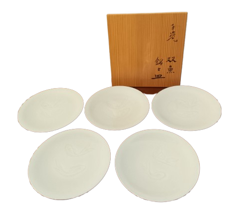 塚本快示「白瓷双魚銘々皿」をお買取りいたしました。