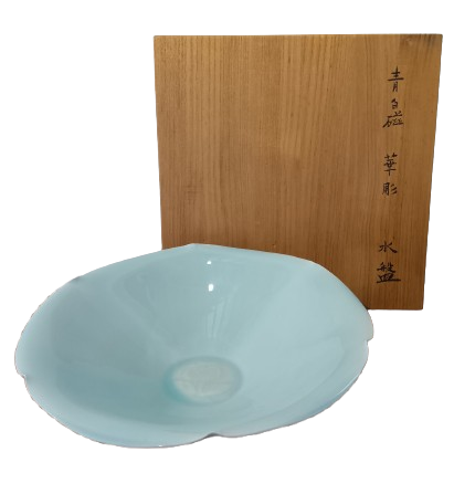 塚本快示「青白磁華彫水盤」をお買取りいたしました。